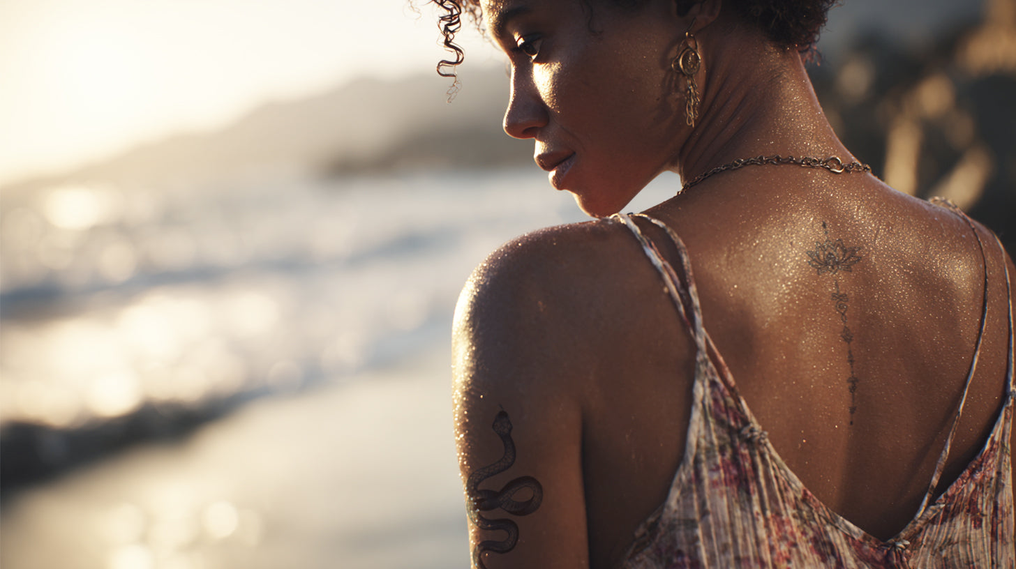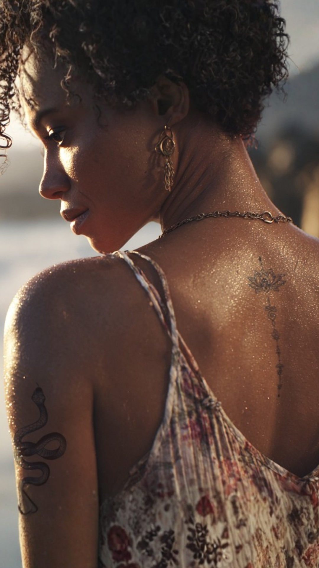 Un souffle d’air glisse sous ton top, effleure un tatouage délicat. Il attire un regard, puis un sourire.