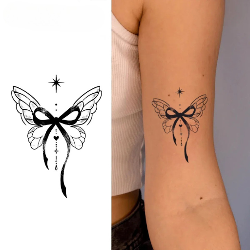 Le tatouage prend une teinte bleu-noir très naturelle. Il fonce légèrement dans les 24 à 48h après l’application, pour un rendu subtil, élégant et réaliste, quelle que soit ta carnation.