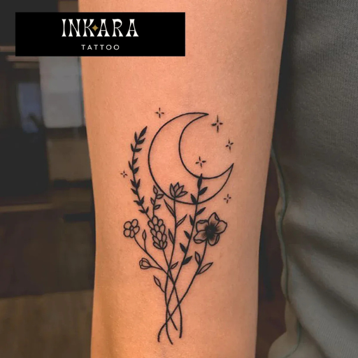 Un croissant de lune entremêlé de fleurs sauvages, symbole d’intuition, de féminité et de renouveau. Pour les rêveuses connectées à la nature et à leur cycle intérieur.