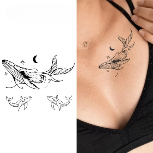 Une baleine majestueuse portée par la lune et les étoiles, comme un symbole de puissance douce et de liberté intérieure. À poser là où l’on veut honorer son intuition profonde.