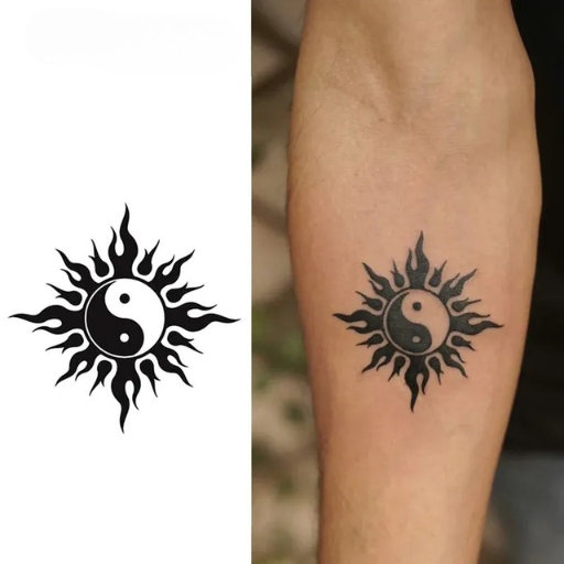 Un symbole fort d’équilibre intérieur, où le feu du soleil embrasse l’harmonie du Yin et du Yang. Pour celles qui avancent avec intensité… mais toujours en paix.
