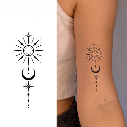 Ce tatouage symbolise la lumière qui te guide, même dans l’obscurité. Un rappel que ton rayonnement intérieur éclaire toujours ton chemin.
