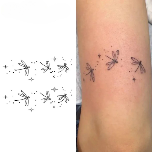 Le tatouage prend une teinte bleu-noir très naturelle. Il fonce légèrement dans les 24 à 48h après l’application, pour un rendu subtil, élégant et réaliste, quelle que soit ta carnation.